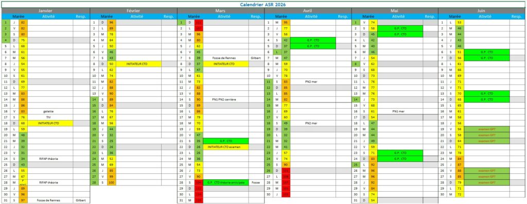 | Samedi 7 mars | 10h00/12h00 | Fosse de Gayeulles | Gilbert | Priorité ouvert aux élèves préparant un niveau, en fonction du nombre ouvert aussi aux diplômés – Max 25 plongeurs | Inscriptions |