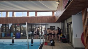 Le créneau qui nous est accordé pour la piscine est court alors ne perdez pas de temps a vous préparer.